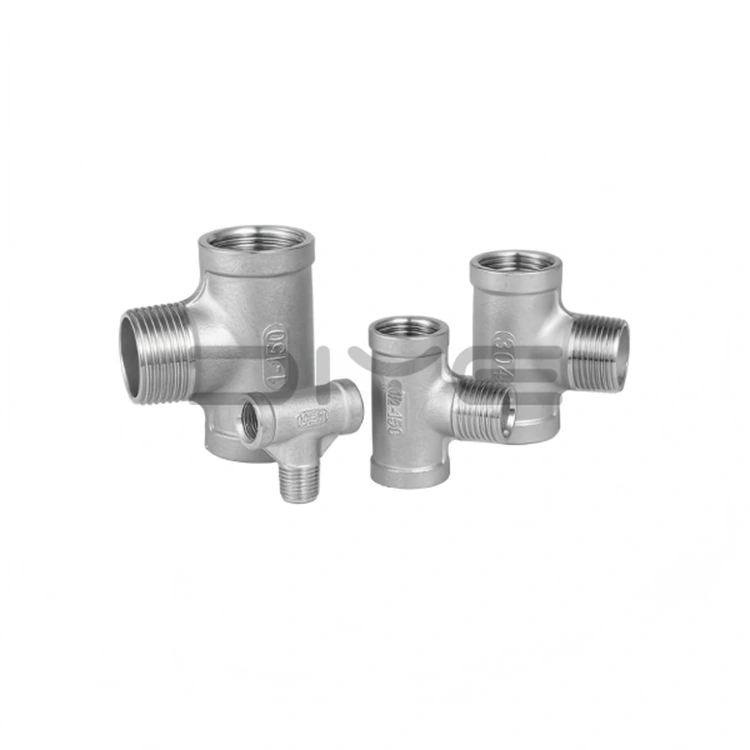 DIYE VENTI Gängade T-stycken i rostfritt stål är gjorda av högkvalitativt SS304 (CF8) och SS316L (CF8M) rostfritt stål. Innan de lämnar fabriken genomgår de spektral sammansättningstestning för att säkerställa mekanisk stabilitet och korrosionsbeständighet.